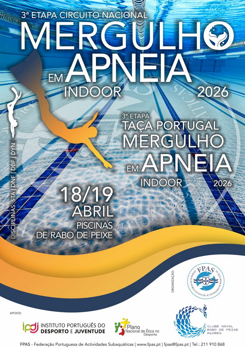 O Clube Naval da Horta estará representado na 3.ª Etapa da Taça de Portugal e Circuito Nacional de Mergulho em Apneia Indoor 2026, a realizar-se nos dias 18 e 19 de Abril, na Piscina Municipal de Rabo de Peixe, em São Miguel, sob organização do Clube Naval de Rabo de Peixe.
