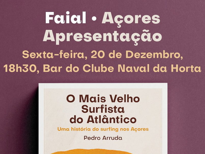 O Clube Naval da Horta anuncia a apresentação do livro "O Mais Velho Surfista do Atlântico", da autoria de Pedro Arruda, com edição da Tinta da China. O evento realizar-se-á hoje, dia 20 de dezembro, às 18h30, no bar do CNH e contará com a apresentação de Pedro Garcia.